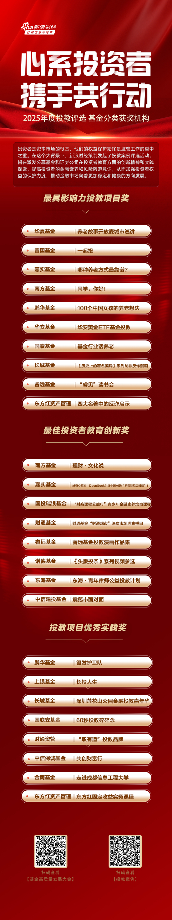 5月15日,新浪财经2025年度基金投教案例评选结果正式揭晓!