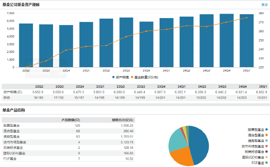 国泰基金成立于1998年3月,国内首批规范成立的基金管理公司之一,股东为中国建银投资有限责任公司、意大利忠利集团、 国网英大国际控股集团有限公司,持股比例分别60.00%、30.00%、10.00%。截止2024年底净利润13.02亿,同比增长20.62%。截止2025年一季度末,资产规模6,852.9亿。