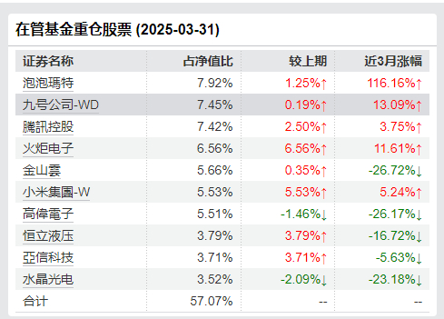 历任管理7至产品,只有1只人气回报为负,其他产品任期均获得正收益,2023年7月6日管理的景顺长城品质长青A任期回报45.90%,排名34/3742;2024-08-24起管理的景顺长城北交所精选两年定开A任期回报146.76%,排名8/4399;2025-04-01起管理的景顺长城新兴产业A,任期回报3.57%,还在建仓期。一季报显示,重仓泡泡瑪特、九号公司-WD、騰訊控股、、火炬电子、金山雲、小米集團-W、高偉電子、恒立液压、亞信科技、水晶光电