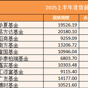 2025年上半年TOP10基金公司规模考:易方达增速3.04%排在第四位 被华夏招商华泰柏瑞超越