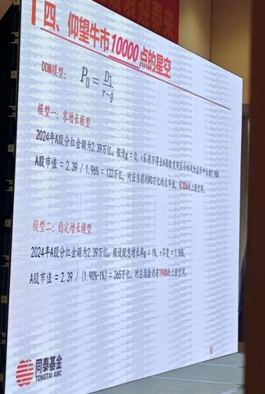 有公募基金喊10000点了:同泰基金高呼A股10000点,推算模型曝光!公司回应:属实,为内部交流