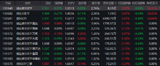 12月30日,A股市场呈现分化走势。沪指早盘一度震荡翻红,创业板指冲高回落,收盘微跌0.06%。板块方面,数字货币、机器人概念表现强势。受相关板块波动影响,创业板50ETF(159949)下跌0.07%,报1.531元,半日换手率达2.76%,成交额8.15亿元,居同类标的ETF首位。