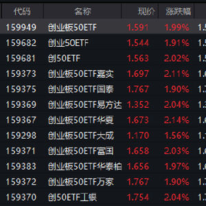 风险提示:基金投资有风险,投资须谨慎。创业板50ETF属于较高风险、较高预期收益的基金产品,其净值表现与创业板市场密切相关。投资者应当认真阅读基金法律文件,判断风险承受能力,审慎做出投资决策。