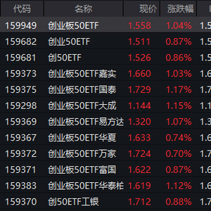 1月22日,A股早盘冲高回落,午后震荡走强,三大指数集体收红,创业板指涨近1%。在此背景下,创业板50ETF(159949)上涨1.04%,报1.558元,换手率为5.20%,成交额达12.99亿元,位居同类ETF首位。