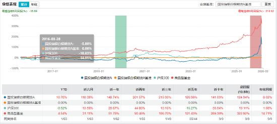 国投白银LOF(161226)成立于2015-08-06,比较基准:上海期货交易所白银期货主力合约收益率(扣除相关费用)。基金经理赵建,截止2025-12-31,合计规模189.44亿元。截止2026年2月2日,今年以来回报10.70%,近一年回报148.74%,近三年回报215.93%。