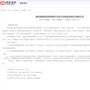 面对汹涌的舆论压力,国投瑞银于2月6日首次回应,表示已成立工作小组研究制定相关方案,承诺“努力降低相关估值调整对投资者的影响”。经过一周多的紧张筹备,最终的专项和解方案终于落地。