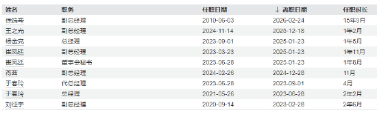 值得注意的是,近两年新华基金核心管理层变动较为频繁。2024年12月,副总经理蒋茜因个人原因离任,其任职时长不到11个月;2025年1月,时任总经理杨金亮与副总经理兼董秘崔凤廷同日离任,两人任职均不足两年;同年12月,副总经理王之光也因个人原因离任,任期仅14个月。加上此次离任的徐端骞,不到两年时间,新华基金已有四位副总经理级别高管离任