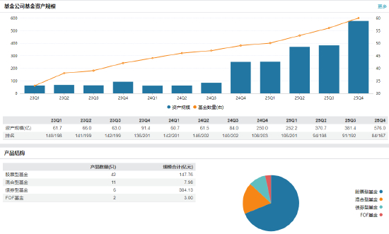 据公开数据,东财基金成立于2018年10月26日,是东方财富证券全资设立的子公司。截止2025年底,资产规模576.0亿元。排名71/164位。值得注意的是,2月13日,公司刚刚完成督察长更替,原总经理助理倪永彪升任督察长,沙福贵不再代任。时隔两周,总经理一职也完成交接。
