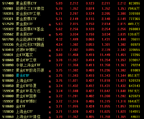黄金ETF表现抢眼