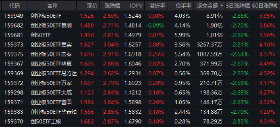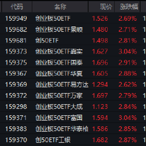 3月5日,市场早盘震荡走强,创指午盘涨2.43%。受此带动,创业板50ETF(159949)涨2.69%,报1.526元,换手率4.03%,成交额8.91亿元,居同类标的ETF首位。