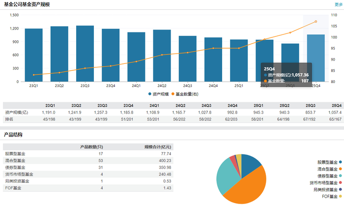 近年来,安信基金的日子并不平静。2025年7月,公司的“灵魂人物”、管理规模占公司非货币基金规模三分之一的“固收+”名将张翼飞因个人原因离职,引发市场广泛关注。张翼飞的离去,叠加债券市场波动及权益市场行情变化,使安信基金管理规模持续承压。公司管理规模自2022年三季度触及高点后逐步下滑,2024年一度跌出“千亿俱乐部”,虽然2025年末重回千亿,但与历史高峰仍有差距。