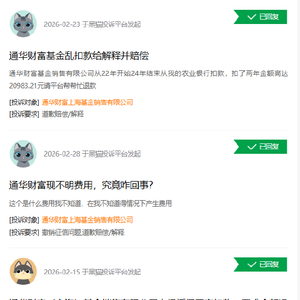 对此,通华财富上海基金销售有限公司回复,“您好,关于您的反馈,我司已收到,鉴于互联网信息安全,我司这边建议您拨打我司客服热线400-101-9301进行咨询,我司会为您在线查询并告知相关原因,感谢您对通华财富的支持,谢谢。”