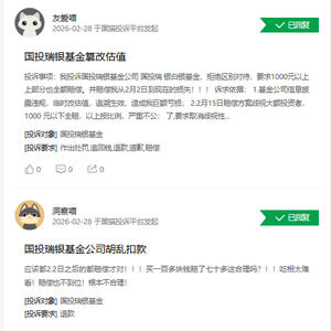另一投诉人表示:“我投诉国投瑞银基金公司区别对待,要求对1000元以上部分也全额赔偿,并赔偿从2月2日至今的损失。”