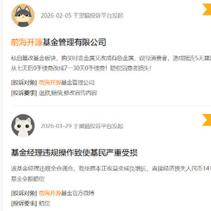 据新浪黑猫投诉【投诉入口】统计数据,2025年3月15日至2026年2月28日,前海开源基金收到有效投诉5起。投诉内容主要为违规操作损害消费者利益。