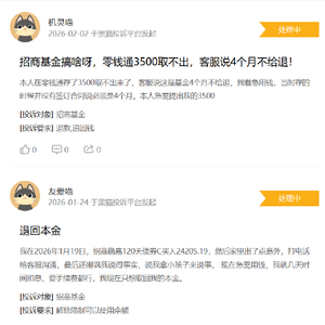 有投诉人表示,“我于2025年12月份在招商稳嘉120天债款c里存了3000元钱,当时上面写的是提取无费用,后来又说没到期不让取。”其他投诉人也表示,“本人在零钱通存了3500元现在取不出来,当时并没有要求我必须存满4个月,现在客服表示没到时间不能取。”