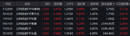 3月17日,三大指数冲高回落,午后单边下跌,沪指跌0.85%,创指跌超2%。在此背景下,红利低波ETF华泰柏瑞(512890)涨0.41%,报1.210元,换手率1.83%,成交额5.75亿元,居同类标的ETF首位。