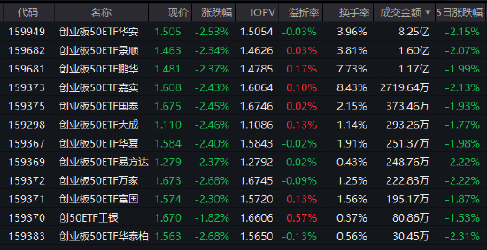 3月31日,市场早盘冲高回落,三大指数集体翻绿,创业板指跌超2%。受此带动,创业板50ETF华安(159949)跌2.53%,报1.505元,换手率3.96%,半日成交额8.25亿元,居同类标的ETF首位。
