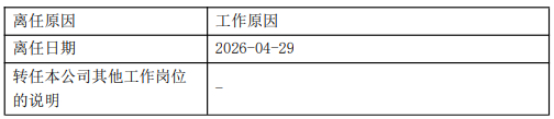 公告显示,公司董事长刘彦雷及总经理宣学柱均因工作原因,于2026年4月29日正式离任。刘彦雷离任后未转任公司其他岗位,宣学柱同样未留任。