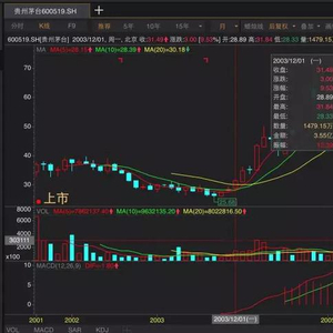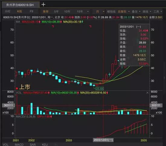 2001年8月至2003年12月贵州茅台月K线,数据来源:wind