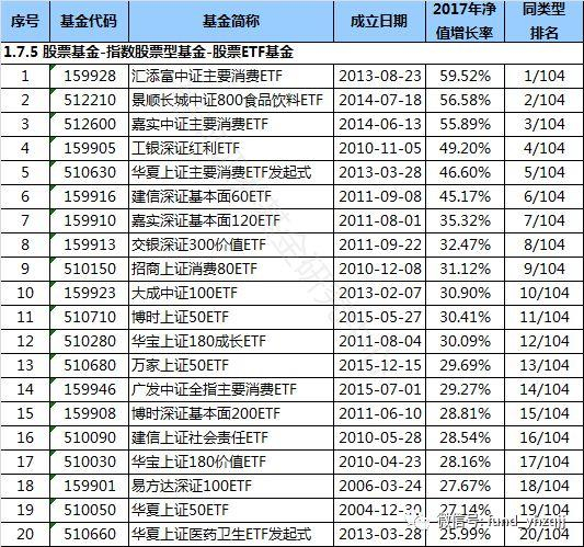 (5)在1.7.5 股票ETF基金中,汇添富中证主要消费ETF(基金代码:159928)以59.52%的收益率排名第一,同类型基金业绩今年以来平均上涨14.92% 。