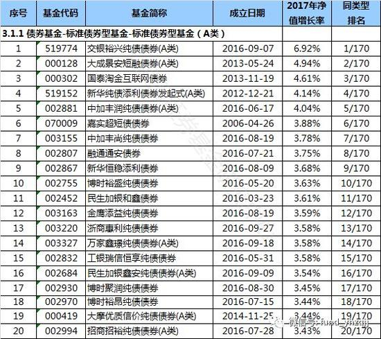 (12)在3.1.1标准债券型基金(A类)中,交银裕兴纯债债券(A类)(基金代码:519774)以6.92%的收益率排名第一,同类型基金业绩今年以来平均上涨1.79% 。