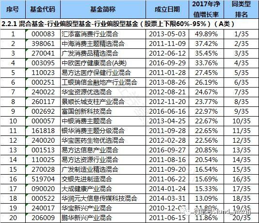 (8)在2.2.1行业偏股型基金(股票上下限60%-95%)(A类)中,汇添富消费行业混合(基金代码:000083)以49.89%的收益率排名第一,同类型基金业绩今年以来平均上涨12.72% 。