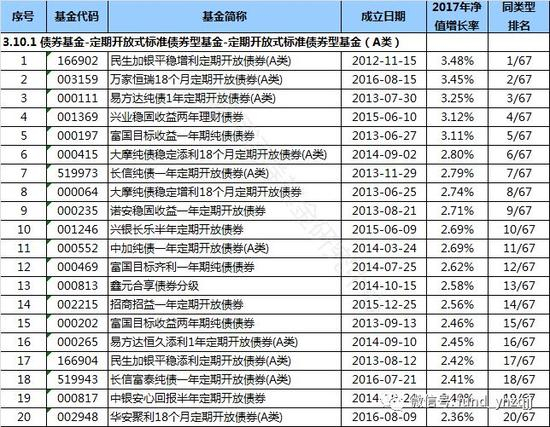 (14)在3.10.1定期开放式标准债券型基金(A类)中,民生加银平稳增利定期开放债券(A类)(基金代码:166902)以3.48%的收益率排名第一,同类型基金业绩今年以来平均上涨1.51% 。