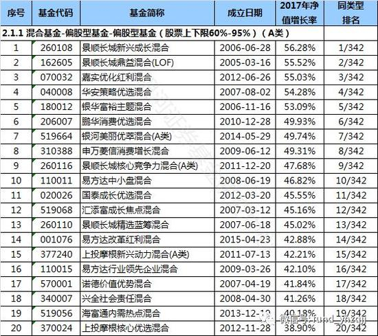 (6)在2.1.1偏股型基金(股票上下限60%-95%)(A类)中,景顺长城新兴成长混合(基金代码:260108)以56.28%的收益率排名第一,同类型基金业绩今年以来平均上涨15.33% 。