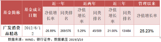 表:广发消费品精选近三年净值增长及排名