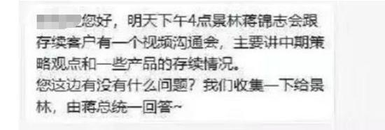 业内流传出的一些聊天记录截屏也证实了这一消息,沟通内容将以中期策略观点和产品存续情况为主。