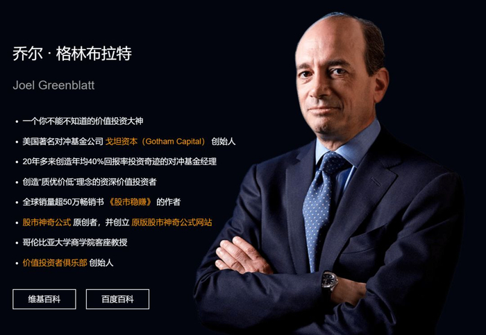 要谈神奇公式,得先认识乔尔·格林布拉特。