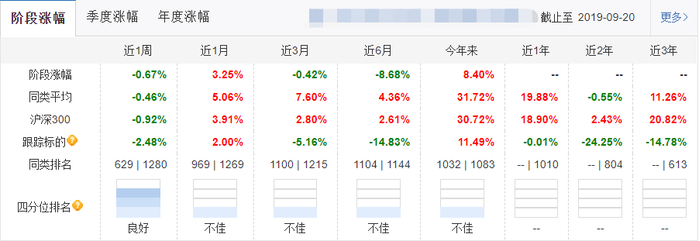 截至9月20日,年内阶段涨幅仅8.4%,低于同类平均31.72%,四分位排名为不佳。不过该基金成立于2018年11月末,成立时间尚短。