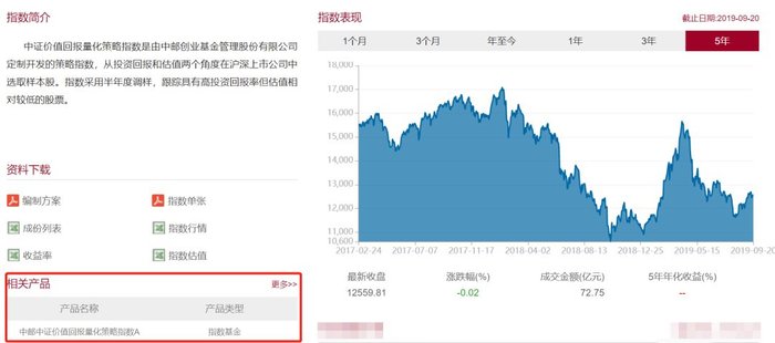 当前,该指数的相关产品显示为中邮中证价值回报量化策略指数基金。