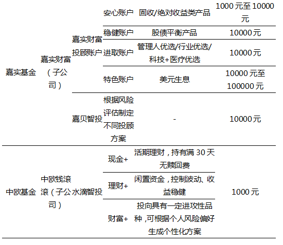 嘉实基金旗下的嘉实财富成立于2012年,华夏基金旗下的华夏财富成立于2018年,均已在北上广深等多地设立财富中心。其中,华夏财富目前已有上百名专业服务人员负责基金投顾组合的策略开发,以及自动调仓机制,可实现投前、投中、投后的持续性服务。