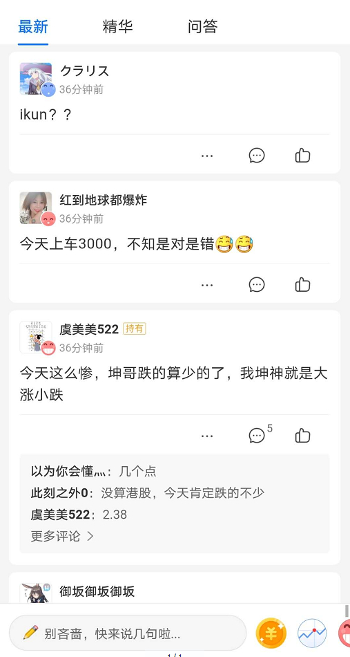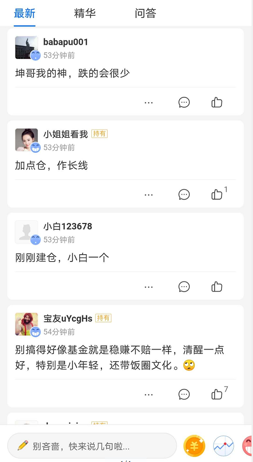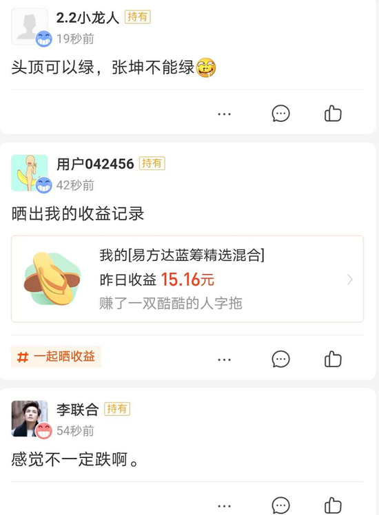 另有一位基民对新浪财经表示,她的男朋友也是新入坑的“ikun”,是源于支付宝首页金选基金的推荐,“他看到推荐就买了,以前都不关注投资的,最近都开始跟我聊基金了。”正如上述基民所说,身边不关注投资的人,最近都在在各大平台上谈基金,而这也成为了他们社交方式之一。