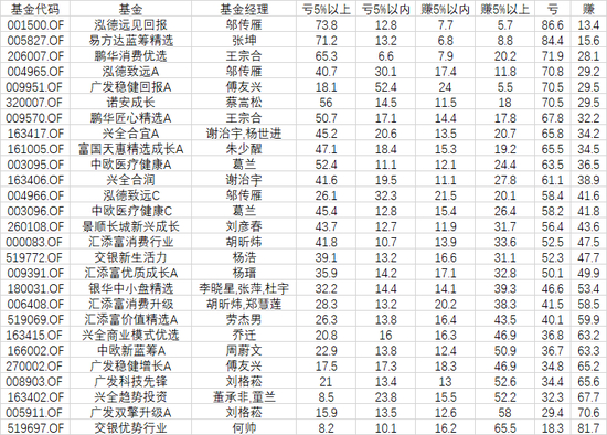 这其中,有些明星基金经理的亏损比例相当高,最高超过85%!