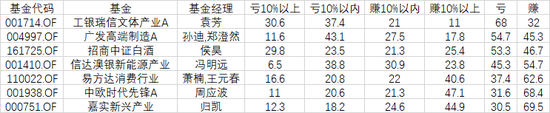 此外,涉及过半亏损者,既有行业特色鲜明的基金经理,也有整体平衡的基金经理;既有年轻小将、也有资深老帅;既有善于“进攻”者,也有历来的投资平衡者,还有对风险相对厌恶的基金经理。