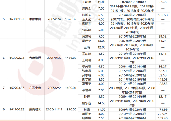 从全部上市基金来看,一共有8只成立以来收益超10倍的基金,