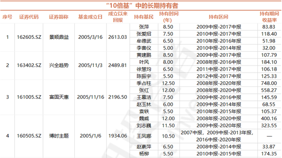 这样看起来,“躺平”的基民好像真的能“躺赢”,但从“10倍基”的其他持有人回报来看,也并不尽然。