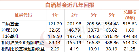 从招商中证白酒的近几年回报来看: