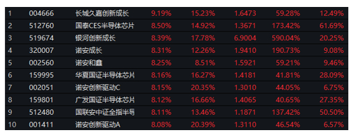 而这得益于半导体的疯狂,昨日表现最强的ETF毫无意外,涨幅榜名列前五的全部是芯片、半导体类ETF,带有芯片股的科创50ETF同样强劲,国泰基金的芯片ETF(512760)更是以8.65%的单日涨幅高居ETF基金第一。