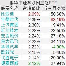 公告书显示,截至2021年6月24日,前十大重仓股中,比亚迪占净值比最高;从近三个月涨跌幅看,前十大重仓股中仅华域汽车下跌,其余9只个股全部上涨,宁德时代大涨63.19%,比亚迪紧随其后,上涨了50.68%。