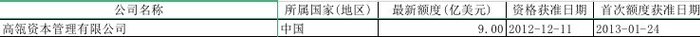 在QFII方面,2012年12月高瓴资本管理有限公司获得了QFII资格,并在次年1月首次获得了额度,最新额度为9亿美元。