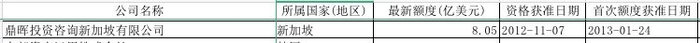 值得一提的是,早在2012年11月,鼎晖投资咨询新加坡有限公司就拿到了QFII的资格,并和高瓴同期首次额度获准,最新额度为8.05亿美元。