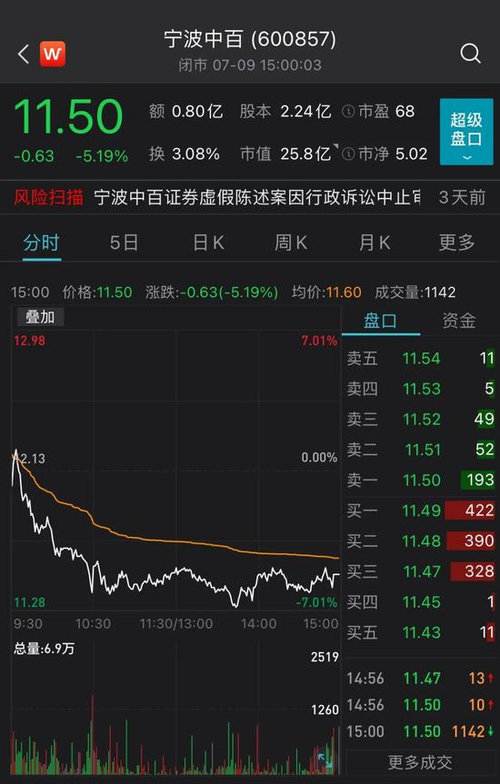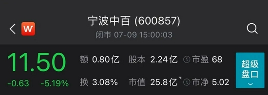 主营商业零售的宁波中百,目前总市值25亿元,截至7月9日收盘,报11.50元/股,就在徐翔出狱消息前夕,宁波中百7月6日跌停,距离其最近一年股价高位15元/股,仍有不少差距。