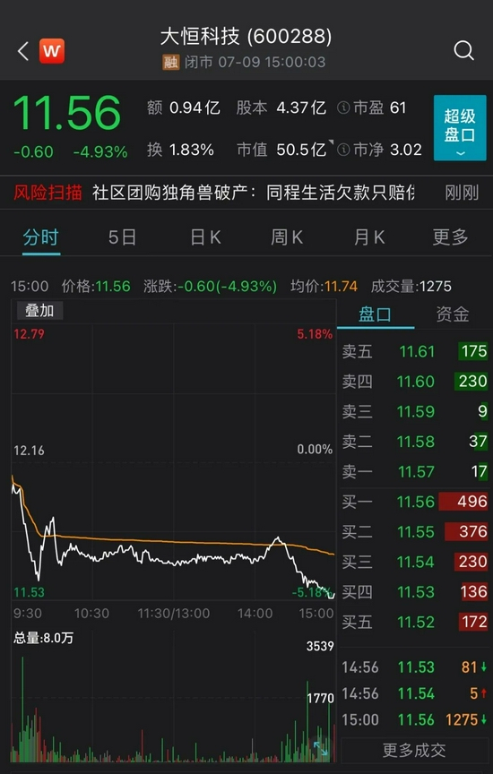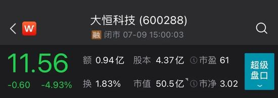 大恒科技跌4.93%;