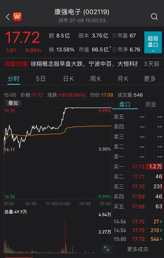 康强电子则是涨停;