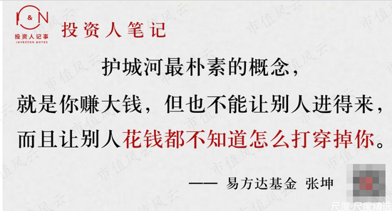 张坤:它是一个很综合的考虑,你要对比过很多东西,看过很多的商业兴衰、时代、好的、成功的,才可能以更大概率判断出护城河是否容易被攻破。