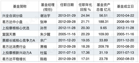 这6位中,管理时间最长、年化收益率也最高的是富国天惠精选成长的基金经理朱少醒,年化收益率20.29%。另5位的年化收益均在10%至11%之间。