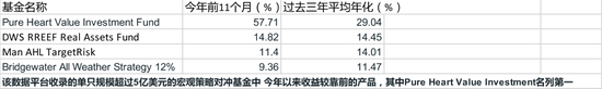 Pure Heart Value Investment Fund相关材料显示,基金使用宏观(主策略)和股票策略,基金于开曼群岛注册,投资目标是通过灵活投资获得中长期的资本增值。投资标的包括股票、债券等多类资产、既包括上市证券也包括未上市证券。这只基金今年前11个月收益达57.71%。 另一只产品Pure Heart Natural Selection Fund 今年前11个月收益也超过了50%,不过规模较Pure Heart Value Investment Fund小些。